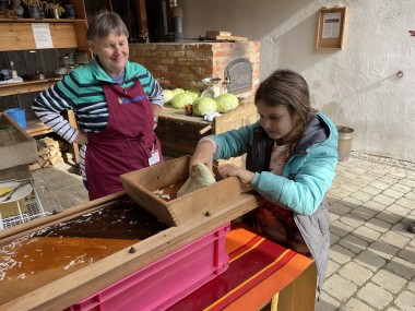 Dorothea und Werner Nafz stiften dem Etterhof neue Schürzen |